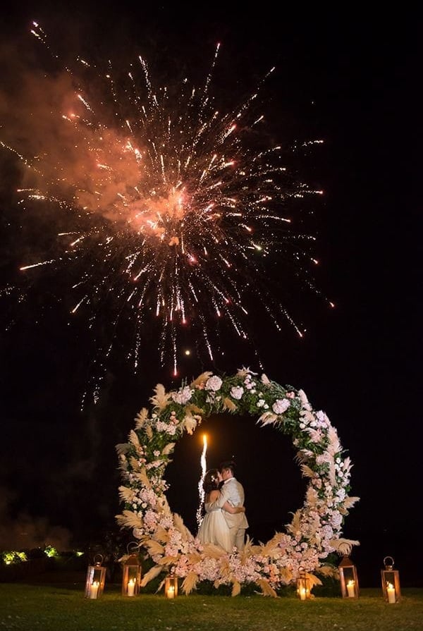 Start your reception with a vibrant firework burst just as the sun dips below the horizon. The blend of natural colors and fireworks is unforgettable.
