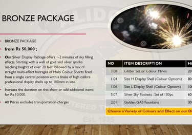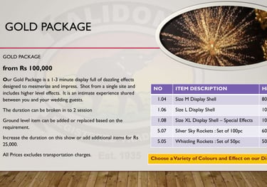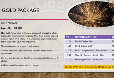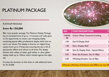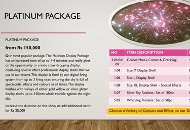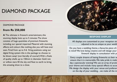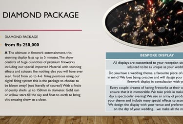 With a sparkling selection of professional fireworks displays, each personalised and custom-made to your requirements, you're sure to find the fireworks display of your dreams!